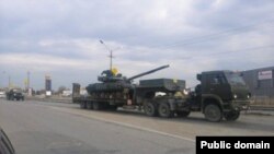 Российские войска переправляют захваченные украинские танки на север Крыма.