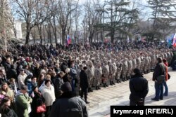 В аннексированном Крыму 23 февраля прошли торжественные мероприятия по случаю первой годовщины создания так называемого народного ополчения – народной дружины Крыма, больше всем известной, как «самооборона Аксенова».