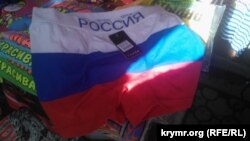 В разгар «крымской весны» самым востребованным атрибутом в Крыму стал российский флаг. Он «украшал» лобовое стекло чуть ли не каждой второй машины. Сейчас с триколорами ездят единицы. Но встречаются и особо преданные патриоты. Водитель симферопольской маршрутки прицепил на стекло сразу 5 российских флажков.