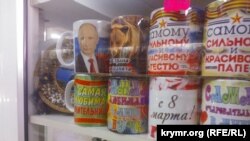 С Путиным в Крыму стало модно… чаевничать. Чашку с изображением российского президента можно купить за 250 рублей. И здесь медвежью тематику не обошли стороной. По соседству с чашкой с изображением Путина такая же с медведем и возбуждающей патриотов надписью: «Наша страна – наши правила», что можно трактовать и так: «Что хочу, то и ворочу».