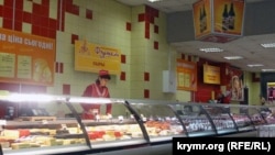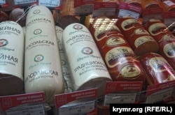 Колбаса, в основном, местная. Маркировка «Дружба народов», что видна на колбасе в витрине. Был крымский совхоз, теперь это мультирегиональная торговая марка, входит в агрохолдинг «Мироновский хлебопродукт». Мясокомбинат «Скворцово», снабжающий колбасными изделиями весь Крым, вообще принадлежит нынешнему министру сельского хозяйства Крыма в правительстве Аксенова Виталию Полищуку. Так что с колбасой проблем нет. На привозном или на своем мясе работают мясокомбинаты – не знаю, но колбас крымских брендов, причем довольно качественных, хватает. Ассортимент разбавлен, как видите, краснодарской продукцией, цены сопоставимы.