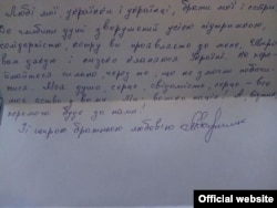 «Надюша, привет! Желаю тебе одного: свободы и победы! Это хоть и два слова, но смысл для нас один, – пишет Сенцов. – Держись! Не буду уговаривать тебя кушать, ты сама знаешь, что делаешь, но очень хочу, чтобы ты не страдала – они этого не достойны! Слава Украине!»