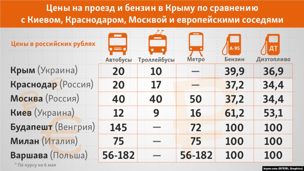 Цены на проезд в Крыму догоняют столичные (инфографика)