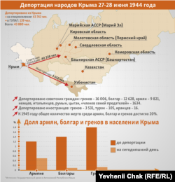 До войны армяне составляли 1,2% населения полуострова, греки – 1,8%, болгары – 1,4%. В результате депортации их совокупная доля в структуре населения полуострова упала в шесть (!) раз и на сегодняшний день составляет: армян – 0,5%, греков – 0,13% и болгар – 0,09%.