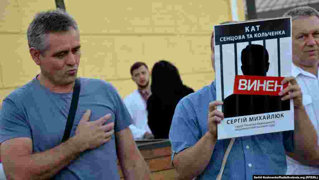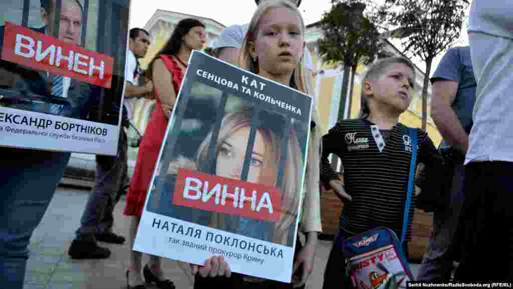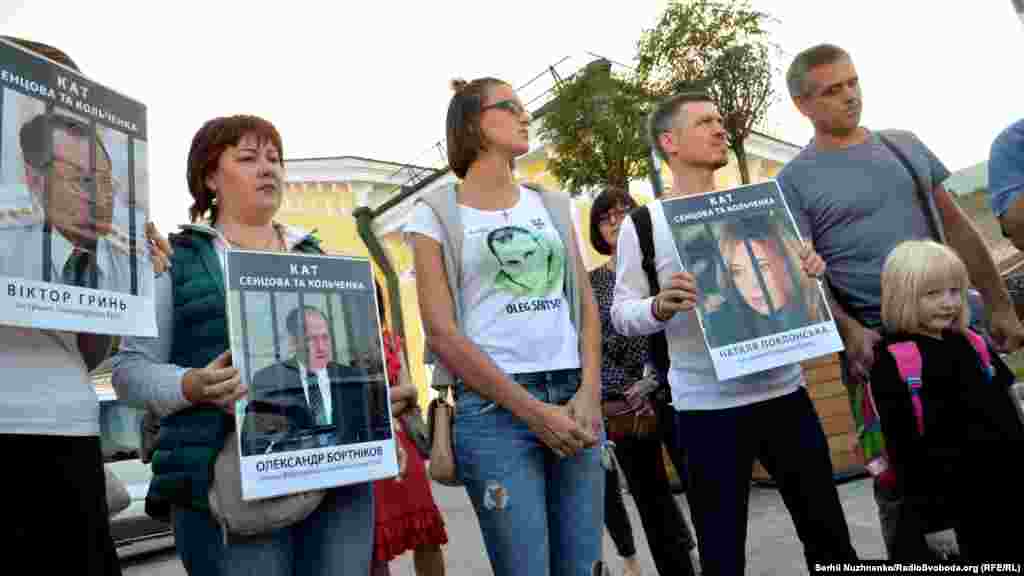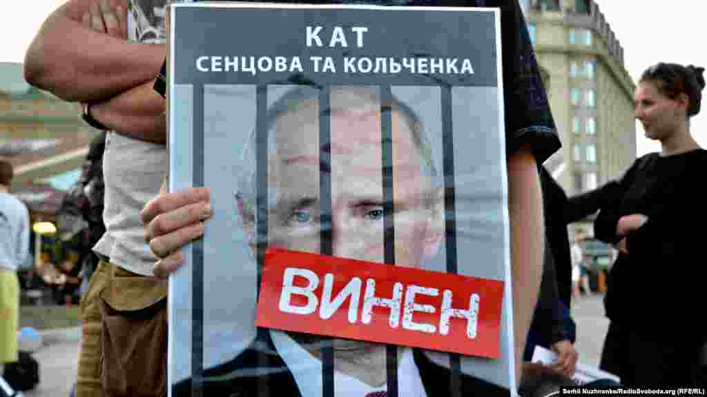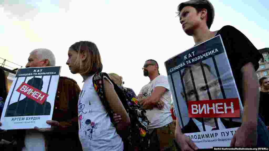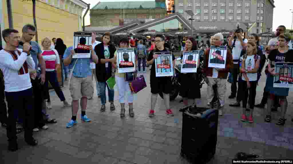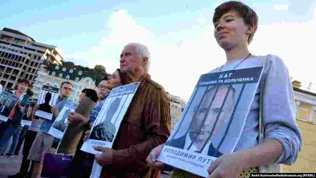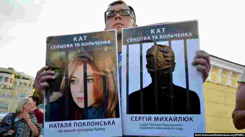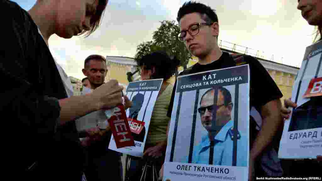 На Почтовой площади в Киеве прошла акция, посвященная годовщине суда над крымчанами Олегом Сенцовым и Александром Кольченко. 25 августа 2015 года российским судом был вынесен приговор, согласно которому Сенцову присудили 20 лет лишения свободы в исправительной колонии строгого режима, а Кольченко – 10 лет. На акцию в украинской столице активисты принесли фотографии российских чиновников, которых считают причастными к сфабрикованному делу. В конце мероприятия портреты заклеили лентами с надписью «Виновен». В акции приняли участие бывший политзаключенный Геннадий Афанасьев, сестра Олега Сенцова Наталья Каплан и российский адвокат Илья Новиков.