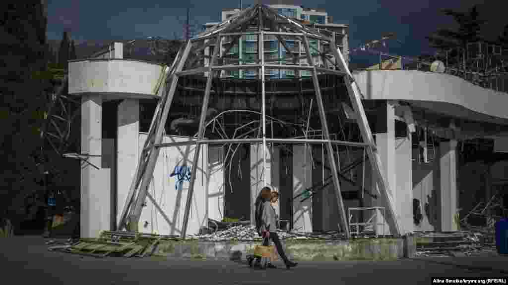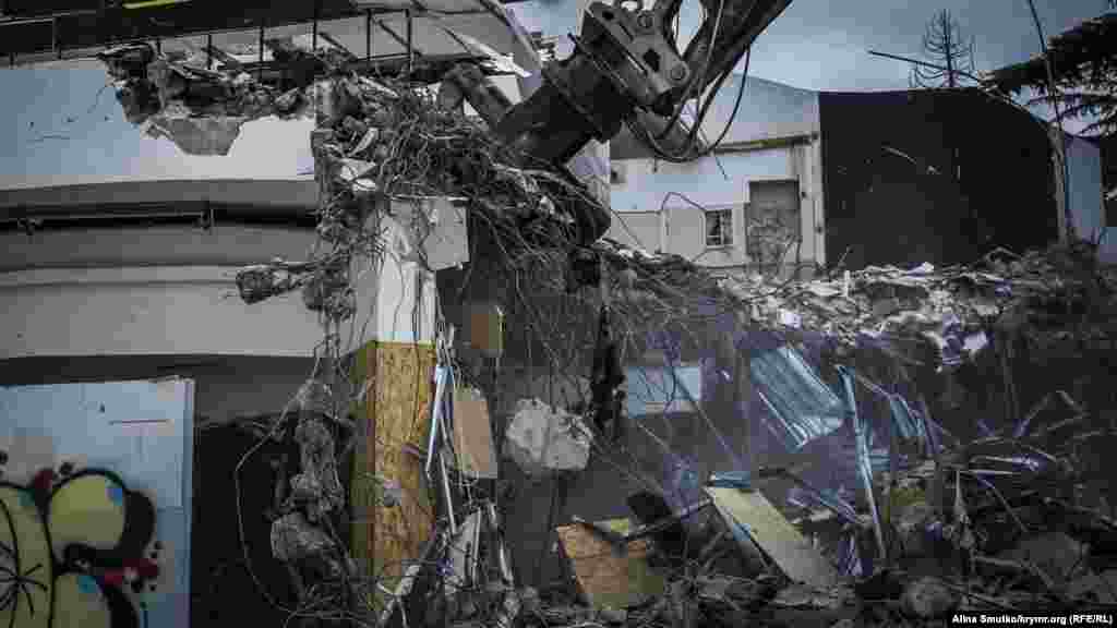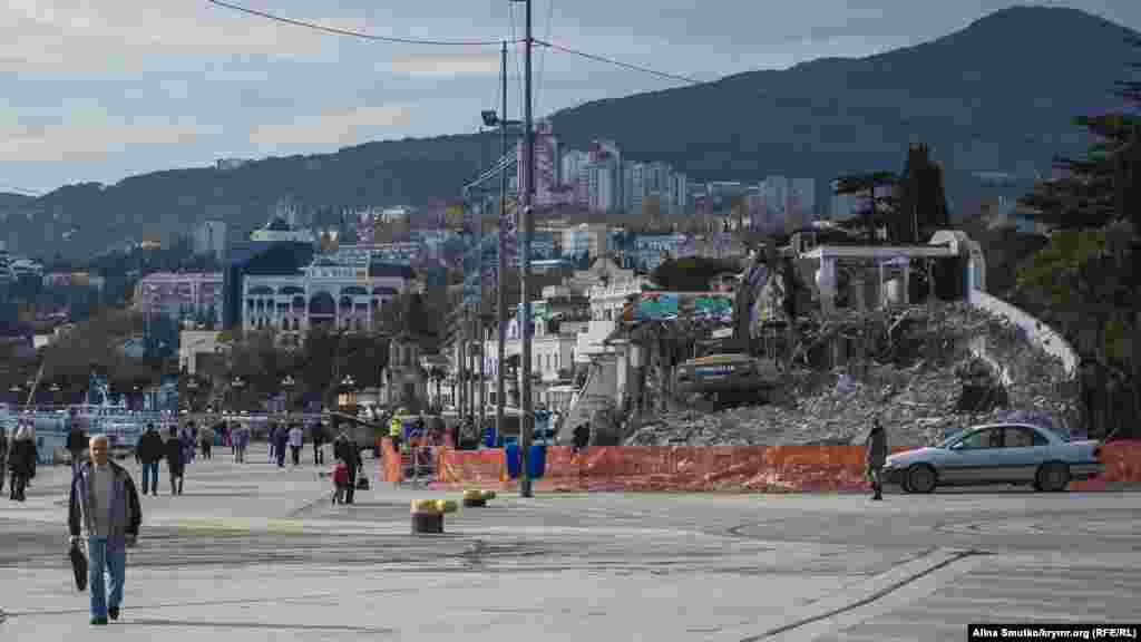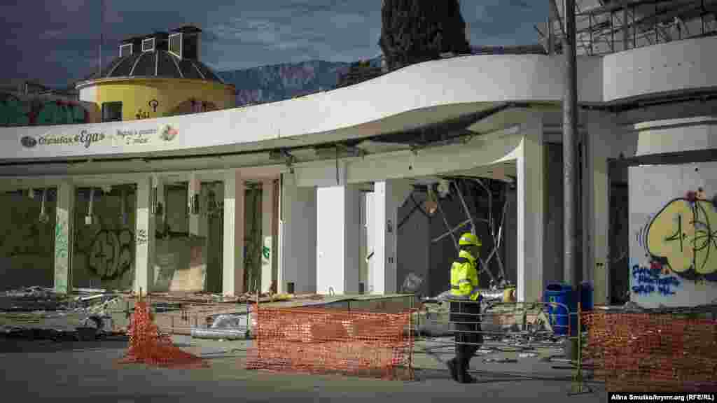 Сносить торговый комплекс «Еда» на ялтинской набережной начали 2 ноября. Окончательный демонтаж здания планируется к концу года.