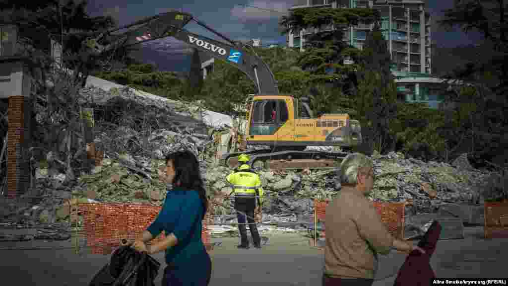 «Еда» и кувалды: в Ялте сносят торговый комплекс Рината Ахметова (фотогалерея)
