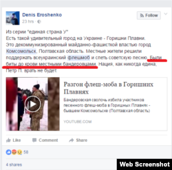 В российских СМИ и соцсетях распространили информацию, что бойцы ВСУ якобы избили участников «песенного флешмоба» в городе Горишни Плавни на Полтавщине. В полиции Полтавщины такую информацию в комментарии для Радио Свобода опровергли.