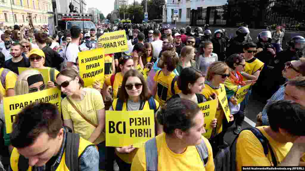 18 июня в Киеве состоялся Марш равенства, который длился более часа и проходил под усиленным наблюдением правоохранителей – 5500 человек. Были установлены фильтрационные пункты, дежурили кинологи и конная полиция.