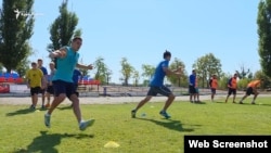 В разных футболках и трусах 22 игрока симферопольской «Таврии» рассекают стадион в Бериславе (город в Херсонской области принял крымскую команду на материке). Единой тренировочной формы у футболистов нет, зато есть славное прошлое и вера в большое будущее. «Таврия» – первый чемпион независимой Украины. После аннексии Крыма Россией команда играла среди любителей, а в нынешнем футбольном сезоне стала новичком украинской Второй лиги.