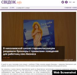 Российские и украинские СМИ распространили фейк о том, что в одной из школ Николаева после лекции о СПИДе школьникам якобы раздали брошюры для работниц секс-бизнеса.