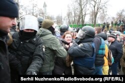 Как сообщает корреспондент Радіо Свобода, правоохранители пустили слезоточивый газ, автомобиль с Саакашвили начал медленно двигаться по Трехсвятительской в сторону Украинского дома. Но потом активисты спустили шины.