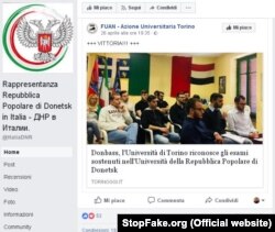 «Эта «новость» с большим пафосом была обнародована на Facebook-странице так называемого «представительства ДНР» и на других страницах, связанных с итальянскими правыми. Пост называется «Впервые в истории европейские и итальянские университеты признают документы учебных заведений республик Донбасса: это произошло в Университете Турина», ‒ пишет StopFake.org.