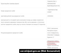 Крым.Реалии выяснили, что до 2014 года Елена Проценко занималась бизнесом в сфере торговли и операций с недвижимостью. В украинском реестре юридических и физических лиц ее свидетельство о регистрации предпринимателем до сих пор значится как действующее.
