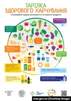 Украинский Минздрав рекомендует потреблять адекватное количество калорий с пищей для удовлетворения собственных потребностей в энергии, потреблять ежедневно достаточное количество полезных пищевых продуктов: овощей, бобовых, фруктов, цельных злаков, орехов, семян, яиц, нежирного мяса, рыбы, а также молочных и кисломолочных продуктов.