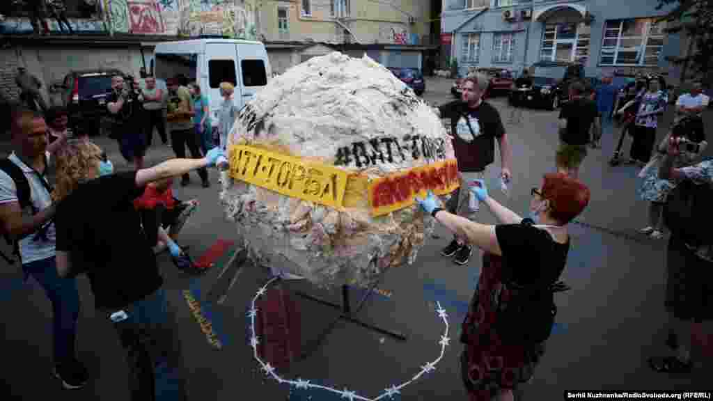 Сожжение ваты. В Киеве подожгли огромный шар в поддержку политзаключенных (фоторепортаж)