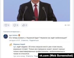 Неспокойно и в соседней российской Тамани Краснодарского края России. В комментариях к видеообращению российского президента Путина в группе «Подслушано в Тамани» пользователи беспокоятся, что дело движется к масштабной мобилизации в РФ.