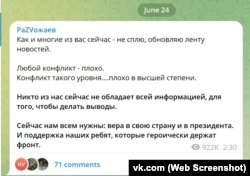 Крымский пророссийский блогер Александр Талипов 23 июня в своем телеграм-канале не скрывал озабоченности ситуацией в России.