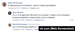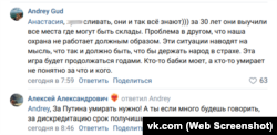 Также прозвучал призыв умирать за российского президента Владимира Путина. Пользователь под ником Алексей Александрович написал другому участнику сообщества, чей комментарий ему не понравился: «Andrey, За Путина умирать нужно! А ты если много будешь говорить, за дискредитацию срок получишь».