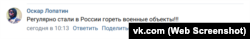 «Регулярно стали в России гореть военные объекты!» – констатирует пользователь под ником Оскар Лопатин в сообществе «Керчь».