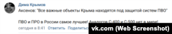 «Аксенов: «Все важные объекты Крыма находятся под защитой систем ПВО» ПВО и ПРО в России самое лучшее! Аналогов С-400 и С-500 нет в мире!» – цитирует российского главу Крыма Сергея Аксенова Дима Крымов.