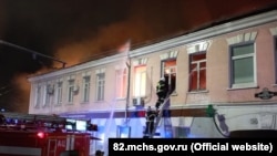ЯЛТА – 25 человек остались без жилья из-за пожара в жилом доме в центре Ялты. В здании загорелась кровля. Пострадавших эвакуировали, но не все хотели уходить. Их имущество охраняют от мародеров силовики Росгвардии. Корреспондент Крым.Реалии побывал на месте событий.