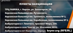 Недавно Министерство по вопросам реинтеграции временно оккупированных территорий Украины опубликовало карты с маршрутами и адресами пунктов вакцинации от COVID-19 для жителей Крыма, пересекающих административную границу с материковой Украиной через КПВВ «Чонгар» и КПВВ «Каланчак».