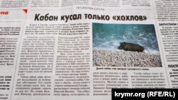 «Крымская правда» в статье под провокационным заголовком «Кабан кусал только «хохлов» пишет о диком кабане в Гурзуфе, который своим поведением перепугал людей. «Сотрудники Госкомветеринарии Республики Крым поймали животное, усыпили его и должны были отправить назад в лес. Но кабан успел стать звездой новостей и соцсетей», ‒ отмечает издание. Сейчас дикий зверь проходит исследования на возможные заболевания. Его судьба будет решена после того, как специалисты проверят, опасен он или нет.