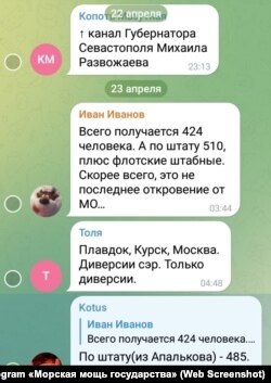 Министерство обороны России только к вечеру 22 апреля признало, что не весь экипаж крейсера «Москва» выжил. Но официально объявило только о гибели мичмана Ивана Вахрушева. Российское военное ведомство утверждает, что без вести пропавшими числятся 27 членов экипажа. В соцсети «ВКонтакте» под публикацией об этом российского главы Крыма Сергея Аксенова среди соболезнований есть и комментарии возмущенных.