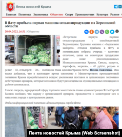 Пропагандистский канал «Крым 24» заявил, что на рынок Керчи привезли больше 40 тонн капусты и редиса из Херсона и Мелитополя. Овощи привезли и в Ялту.