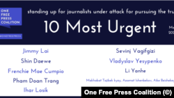 В список также вошли журналисты из Гонконга, Мьянмы, Филиппин, Вьетнама, Азербайджана, Китая, Кыргызстана и Турции.