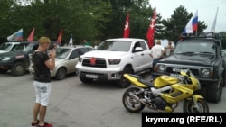 По Симферополю ездят автоколонны с военными песнями и советскими флагами (+фото, видео)