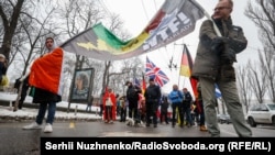 В центре Киева прошла акция в поддержку Украины, которая противостоит российской агрессии и находится под угрозой нового вторжения.