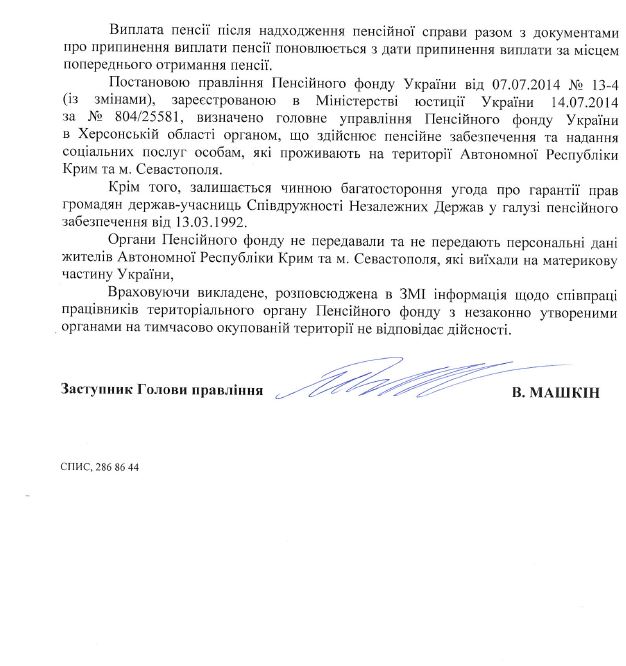 Пенсионный фонд Украины подтвердил переписку с Россией по вопросам крымчан