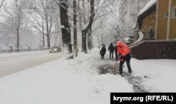 Крымский гидрометцентр сообщает, что в Симферополе за минувшую ночь выпала почти половина месячной нормы осадков – 11 мм снега. При этом корреспондент Крым.Реалии сообщает, что местами толщина снежного покрова достигает 20 см. По его словам, такого снегопада, который продолжался и утром, жители крымской столицы не видели несколько последних лет.