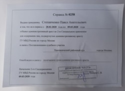 Утром, 9 марта, оппозиционный экс-депутат подконтрольного России Алуштинского горсовета Павел Степанченко вышел на свободу из спецприемника №2 ГУВД Москвы, где он отбывал десятисуточный арест по решению Хамовнического районного суда за «неподчинение законным требованиям сотрудников полиции» при проведении одиночного пикета.