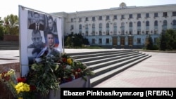 Стенд с фотографиями Захарченко установили утром 1 сентября. Утром цветы к импровизированному мемориалу возложил российский глава Крыма Сергей Аксенов, а также представители «самообороны Крыма».