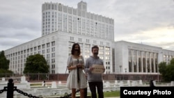 Кандидаты в муниципальные депутаты Москвы Мария Волох и Сергей Смирнов провели акцию в центре российский столицы против репрессивных законов, по которым людей, в частности, наказывают за выступления против войны в Украине.