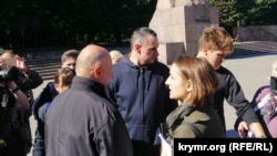 На акции присутствовал украинский режиссер, бывший политзаключенный Кремля Олег Сенцов.
