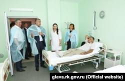 На фотографиях пресс-службы видно, что Аксенов посетил несколько больничных палат, но не сообщается, встретился ли он с Ильми Умеровым, в отношении которого российские правоохранительные органы в Крыму возбудили уголовное дело по ст 280.1 УК России (сепаратизм).