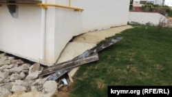 В Керчи рабочие ремонтируют дом для переселенцев с Цементной слободки, которых отселили из-за строительства Керченского моста. Как сообщает корреспондент Крым.Реалии, строители восстанавливают отмостку дома, просевшую после дождей.