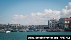 Флаги, бескозырки, тематические воздушные шары, сувениры-пилотки и казаки с нагайками – так аннексированный Севастополь встречает туристов, прибывших посмотреть парад ко Дню военно-морского флота соседней России.