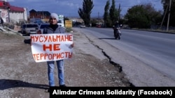 Региональный представитель «Крымской солидарности» Алимдар опубликовал в Фейсбуке фотографии одичных пикетов. Активисты также вышли с плакатами «Поиск террористов – безнадежное дело», «Мусульмане не террористы» и другими.
