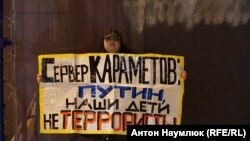 Активисты держали в руках плакаты с требованием прекратить преследование крымских татар, освободить Ахтема Чийгоза, Владимира Балуха, фигурантов «дела Олега Сенцова» и других крымчан.