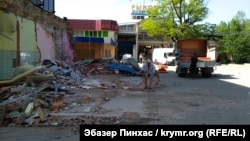 Как сообщает корреспондент Крым.Реалии, тяжелая техника производит снос павильонов, расположенных перед торговым центром. По словам рабочих, после сноса павильонов начнется демонтаж основного здания торгового центра.