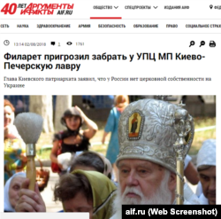 «Собственность церкви в Украине является собственностью украинской церкви. Вот взять, к примеру, Киево-Печерскую лавру, Почаевскую лавру – чья это собственность? Собственность украинского государства. И государство передало свою собственность в пользование Украинской церкви Московского патриархата. Но когда здесь будет признана украинская церковь, то Лавра – и одна, и вторая – будут переданы украинской церкви. Потому что это украинская святыня. А те приходы, которые построили, и свои храмы за свой счет, – то это собственность этих приходов, а не России», – цитируют Филарета на сайте УПЦ КП.