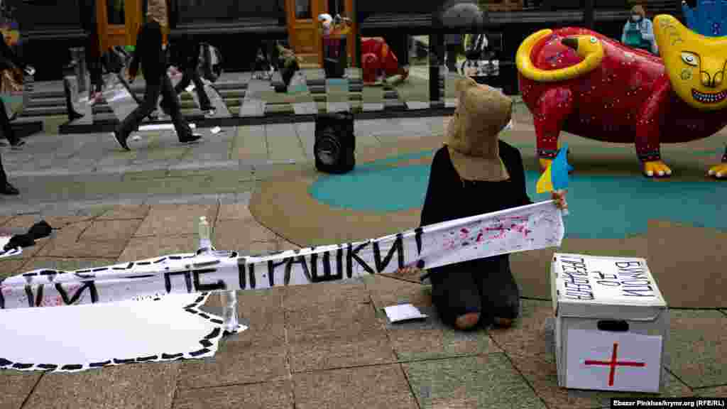 «Жизни заложников Кремля – не игрушки»: акция-перформанс под Офисом президента в Киеве (фотогалерея)