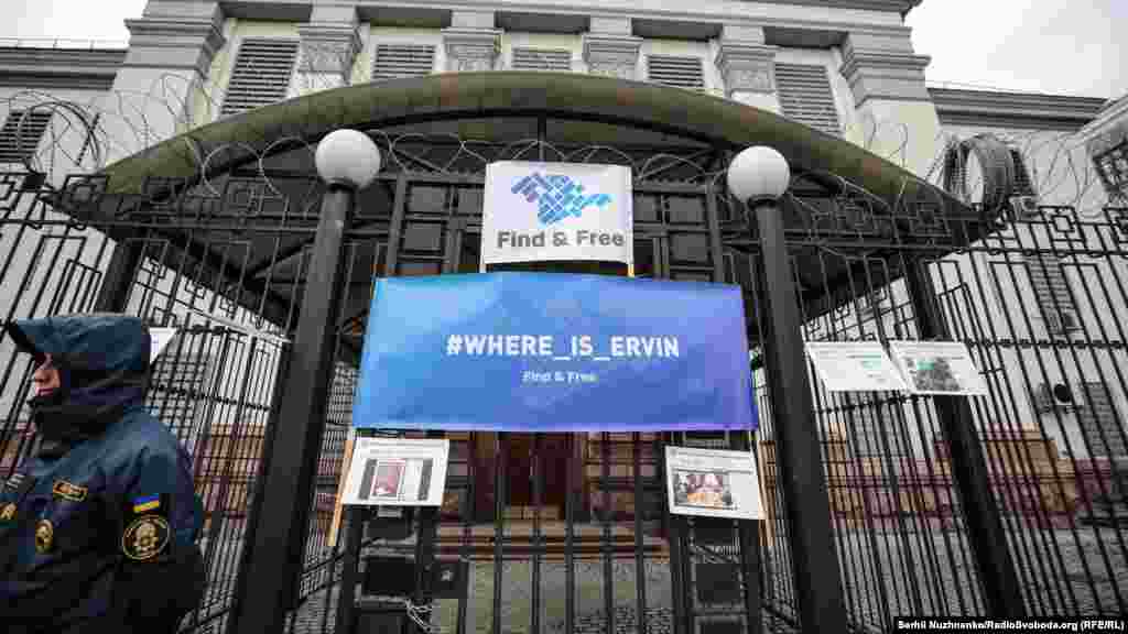 Под посольством России в Киеве 1 марта в рамках информационной кампании «FIND&FREE» прошла акция «Как антигерой «крымской весны» вызвал обострения у вежливых людей».