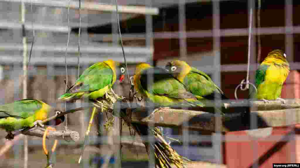 В самом большом парке крымской столицы представители этого ​вида попугаев –масковых наразлучников – появились в прошлом году, благодаря предпринимателям, которые обустроили для них вольеры.