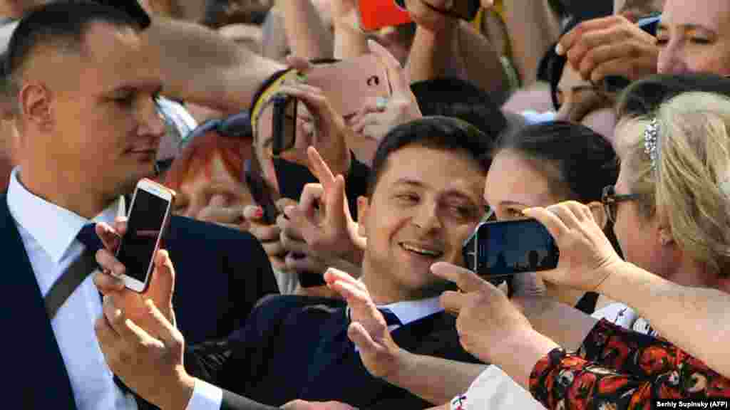 В апреле Зеленский одержал победу во втором туре выборов президента, получив 73,22% голосов. Пятый президент Украины Петр Порошенко имел 24,45%.